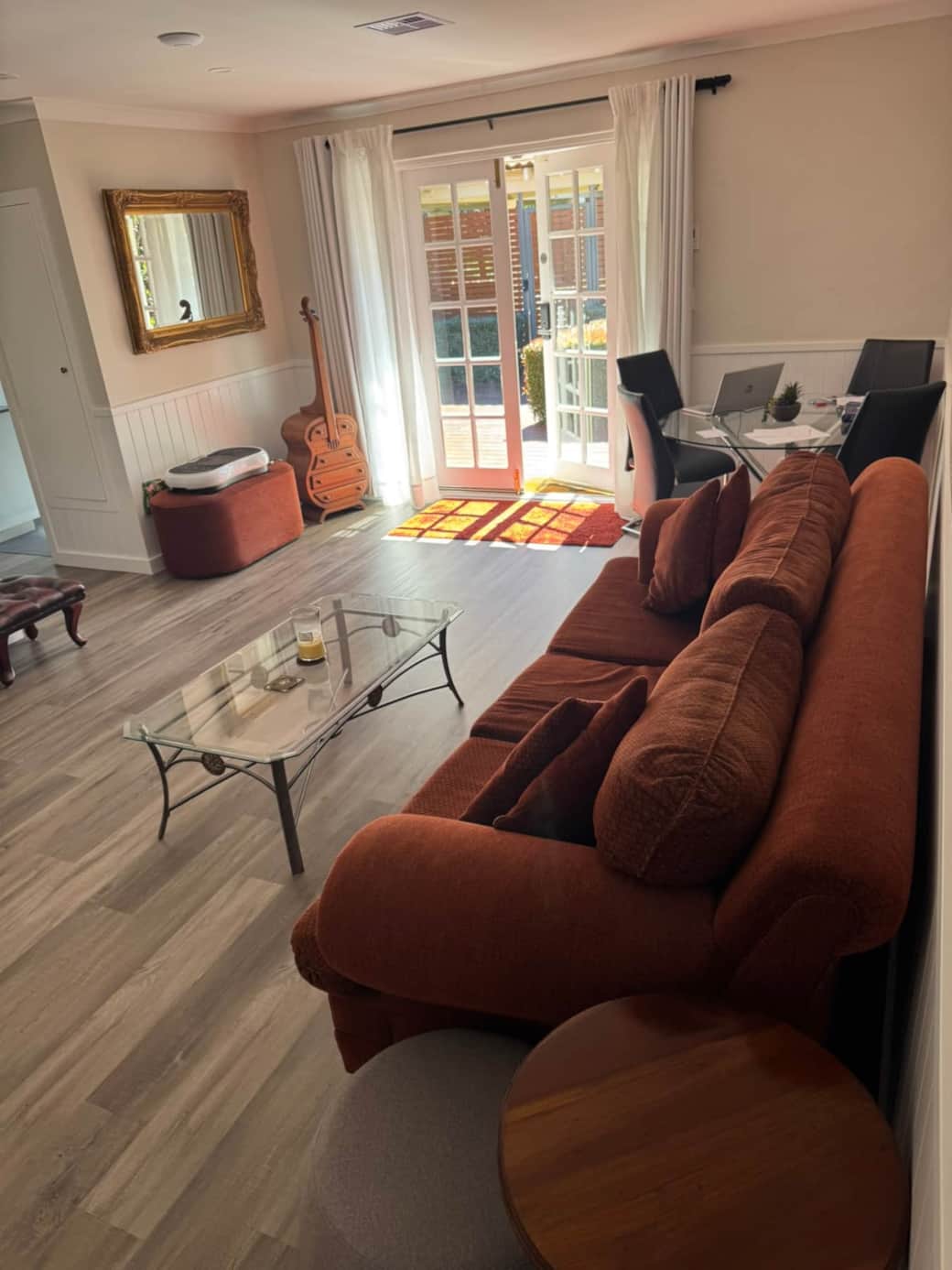 This is a spacious two bedroom, two bathroom fully fitted out luxury apartment also used as our bridal family suite. It is an ideal family getaway for four to six adults where an additional two people can be accommodated on the comfortable pull-out sofa bed if required. The Cottage has an interconnecting hallway with the Avoca Suite allowing them to be joined together to create a spacious 3 bedroom unit for up to 10 people.